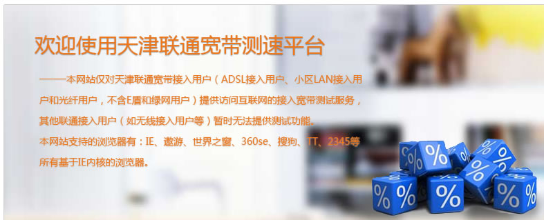 ■ 本平台仅提供对天津联通宽带用户的测试服务,其他用户请勿使用。